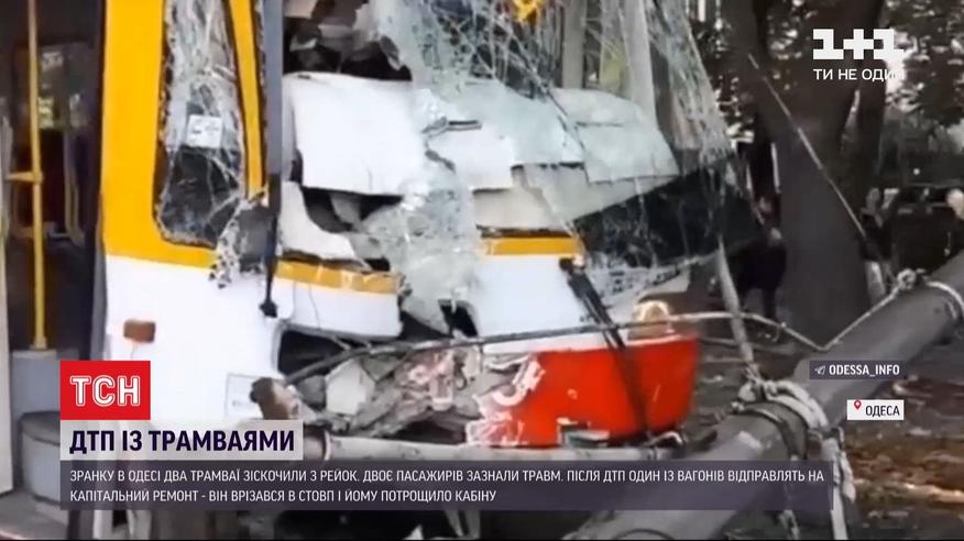 Одразу дві ранкові аварії за участі трамваїв у Одесі. На Люстдорфській дорозі трамвай злетів із рейок, бо під колеса йому потрапило будівельне сміття. Ніхто в салоні не постраждав. А згодом, уже в іншій частині міста, з рейок на швидкості зіскочив другий трамвай. Він врізався у залізобетонний стовп. Удар був такий, що геть розтрощило кабіну, двоє пасажирів зазнали легких травм. Водій устиг відскочити, це і врятувало його. Із яких причин вагон злетів із рейок - з'ясовуватимуть експерти. А згодом трамвай поїде на капітальний ремонт.