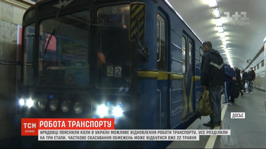 Три етапи завершення транспортного карантину. Перше послаблення Мінінфраструктури анонсує вже на 22 травня, якщо захворюваність спадатиме. На першому етапі має почати курсувати для всіх наземний комунальний траспорт у містах, але не маршрутки. Метро уряд планує відкрити, лише коли Україна пройде пік епідемії.