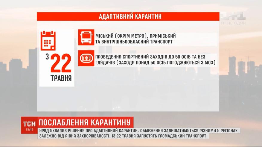 З карантину в адаптивний карантин. Від 22 травня Україна переходить на другий етап, а це відкриття громадського транспорту для всіх, приміське та внутрішньо обласне сполучення. Таке рішення ухвалив уряд. Як буде відновлюватись життя в кожному окремому регіоні тепер будуть вирішувати залежно від кількості хворих.