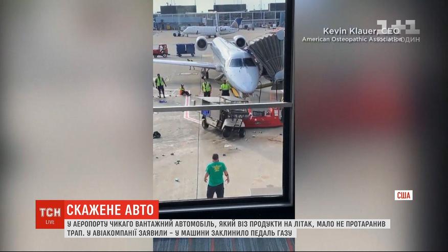 В аеропорту Чикаго вантажний автомобіль, який віз продукти на літак, мало не протаранив трап