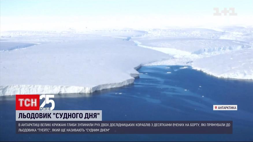 Гігантський айсберг на шляху важливих відкриттів. Великі крижані глиби в Антарктиці зупинили рух двох дослідницьких кораблів, які прямували до льодовика "Судного дня". Саме так в народі називають льодовик "Туейтс", бо від нього залежить доля всієї нашої планети. Якщо він розтане, рівень океанів може зрости на 25 відсотків. І сотні міст підуть під воду.