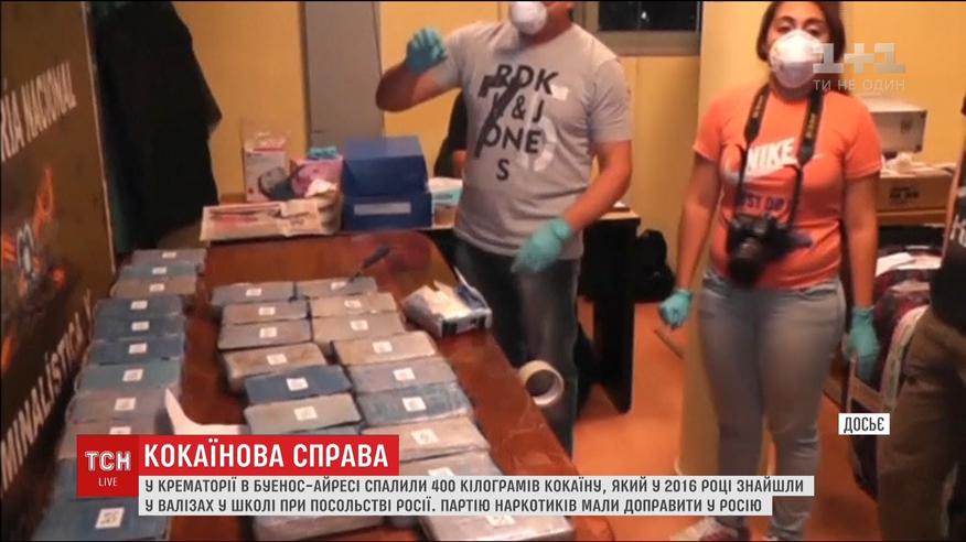 Порошок знищували у крематорії на очах міністра безпеки Аргентини та російського посла. Наркотики поліція виявила у 2016-му на території школи при російському посольстві, звідти за даними слідства, 12 кокаїнових валіз мали відправити у Росію. Вартість партії на чорному ринку оцінювали у 50 мільйонів євро.