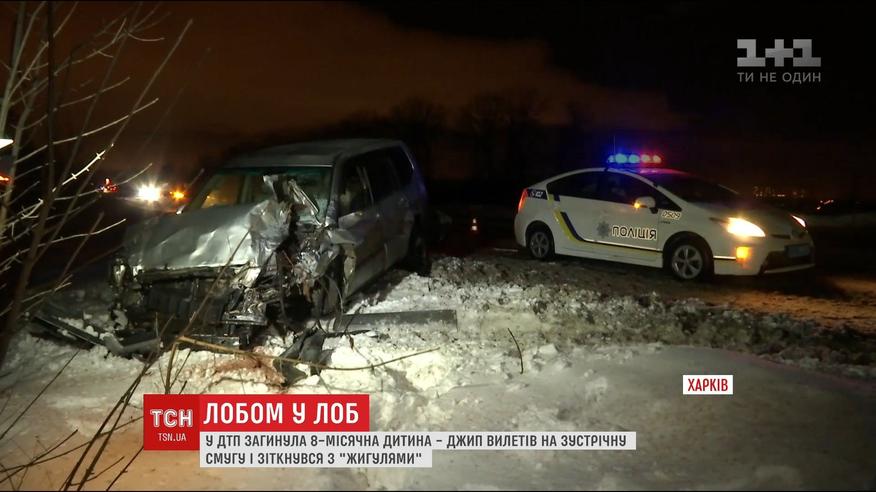 На кільцевій дорозі сьогодні ввечері джип вилетів на зустрічну смугу і лобом у лоб зіткнувся з "Жигулями". Легковик розтрощило, його водія та жінку - пасажира у тяжкому стані шпиталізували, а 8-місячна дівчинка, яка була у дитячій автолюльці, загинула на місці.