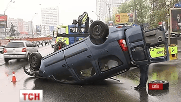 Рух на головній столичній магістралі - проспекті Перемоги - зранку був паралізований. Затор створився через аварію. За даними поліції, іномарка врізалася у опору електромереж, через що обірвалися проводи. Водій легковика котрий рухався по зустрічній смузі, наїхав на проводи та перекинувся. Відомо, що постраждало дві людини.