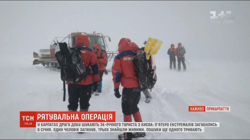 Дві групи лижників загубились ще на Різдво. Трьох людей вдалось врятувати, одного чоловіка надзвичайники знайшли мертвим. Нині тривають пошуки його напарника.