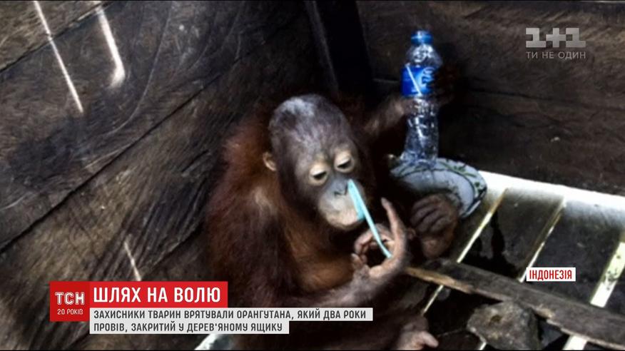 В Індонезії захисники тварин врятували орангутана, який два роки прожив у скрині