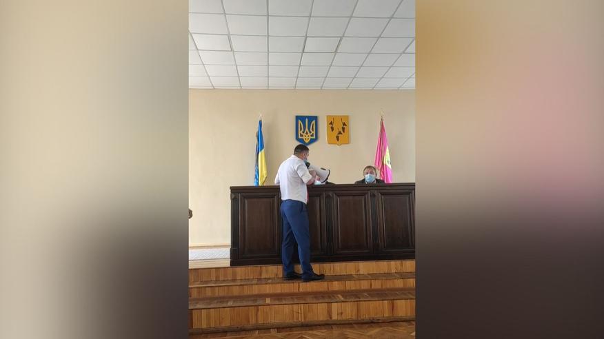 Депутат від "ОПЗЖ" в Ізюмській міськраді Денис Штейман прийшов на сесію з гучномовцем. Він схопився з місця, підбіг до трибуни і намагався перекричати голову та секретаря. Що саме викрикував у гучномовець депутат, присутнім складно було розібрати. Крикуна з зали вивели правоохоронці. Джерело: Х* Харків