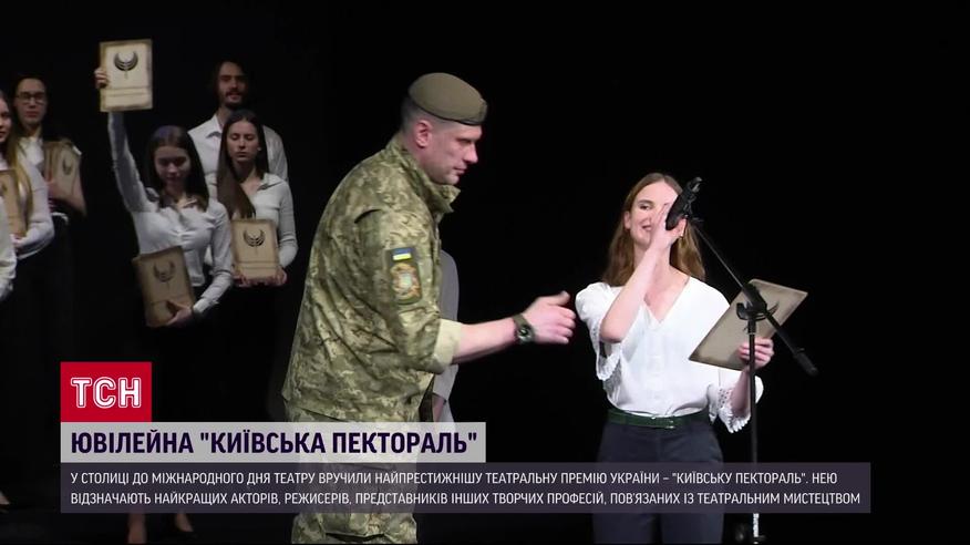 У столиці до Міжнародного дня театру вручили найпрестижнішу театральну премію України – "Київську пектораль". Нею відзначають найкращих акторів, режисерів, представників інших творчих професій, пов’язаних із театральним мистецтвом. 2023-го премія відзначає ювілей – 30 років. У Київському "Молодому театрі" на церемонію нагородження прийшли чимало відомих акторів, режисерів, сценаристів. Були серед них і ті, хто захищає нашу країну на фронті. Цьогоріч відзначають тих, хто порушує теми війни на сцені, підносить патріотичний дух та гуртує українців. Премії отримали, зокрема актори Євген Нищук, Олександр Печериця та Олексій Тритенко, які наразі воюють у лавах ЗСУ.