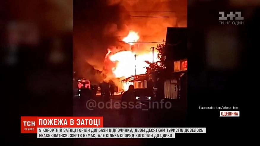 В Затоці відбулася масштабна пожежа. На світанку одночасно спалахнули 4 споруди бази "Граніт": 2 порожніх дерев'яних будиночка, адмінбудівля та прибудова. Згодом вогонь розповсюдився на житло відпочивальників. Близько 20 людей евакуювалися самотужки. Єдиним постраждалим став 25-річний відпочивальник, який надихався диму, але від шпиталізації відмовився. Поліція не коментує причину загоряння.