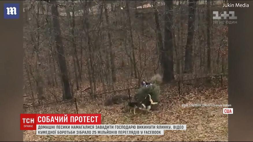 В Мережі набирає популярності відео, як собаки не давали господареві викинути ялину