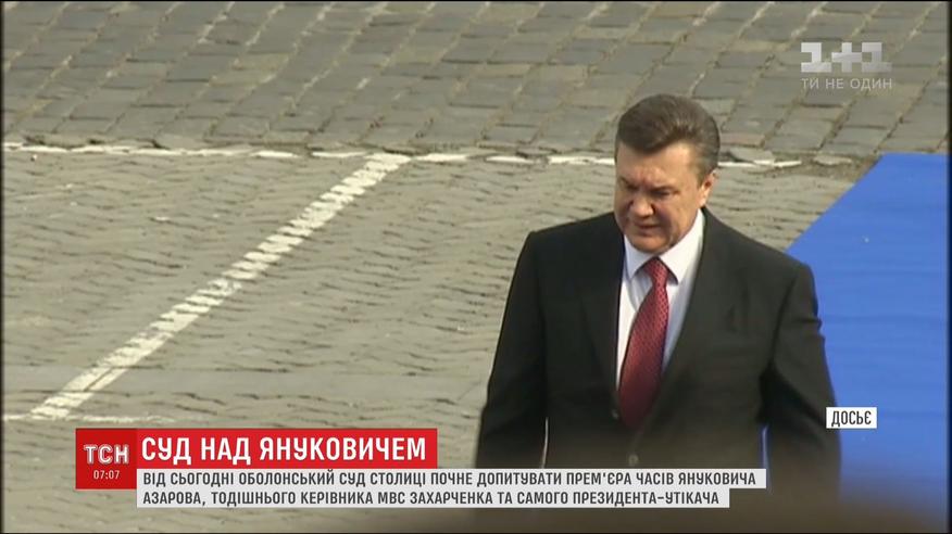 Закидають утікачу, який уже 4 роки переховується в Росії, державну зраду. В суді продовжать заслуховувати свідків захисту. Зокрема, мають допитати найближчого соратника Януковича - Миколу Азарова і екс-керівника МВС Віталія Захарченка.