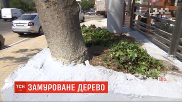 В Одесі будівельники замурували дерево, яке заважало будувати паркан