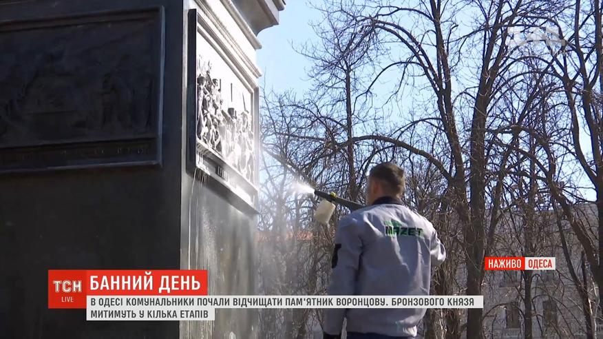 В Одесі комунальники почали відчищати пам’ятник Воронцову