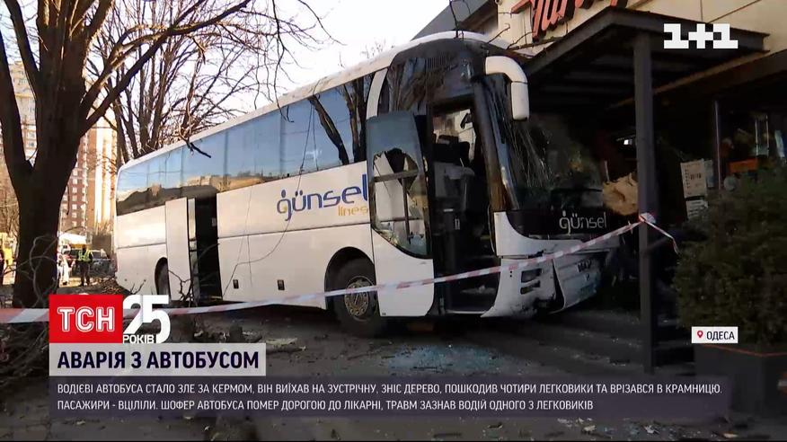 В Одесі близько 9 ранку водій пасажирського автобуса знепритомнів за кермом. Машина зупинилася лише коли вдарилась у будівлю на узбіччі. Одна людина загинула, ще одна - зазнала травм.