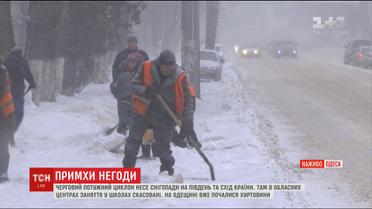 Опади посилилися кілька годин тому і синоптики прогнозують, що снігу цього разу може насипати більше ніж напередодні. Попри те, що на вулицях чимало снігоприбиральної техніки рух усього транспорту ускладнено. Ну і в місто знову не пускають вантажівки. Через негоду в школах відмінили до п'ятниці заняття.