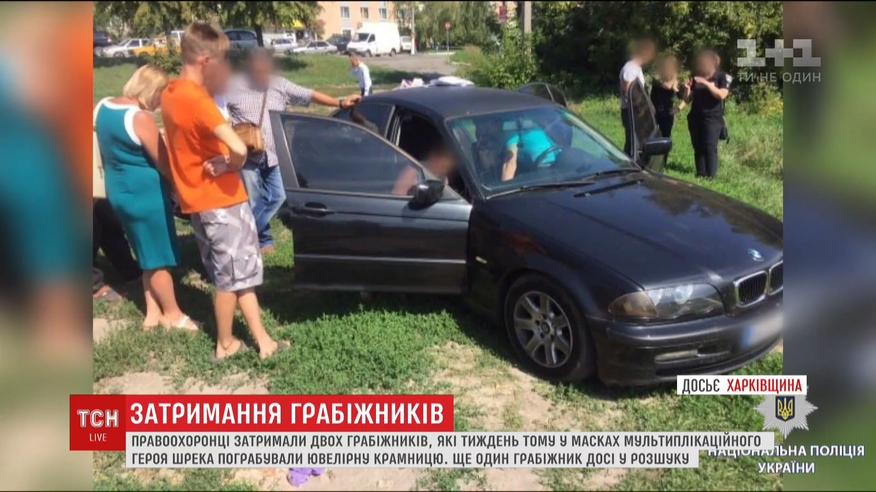 Тиждень тому до ювелірної крамниці у селищі Донець троє невідомих увірвались у масках відомого мультиплікаційного персонажа Шрека. Погрожуючи зброєю, винесли з крамниці ювелірні вироби на суму 300 тисяч гривень. Ще 17 тисяч забрали готівкою. Затримати по гарячих слідах грабіжників не вдалося. Лише тепер на слід двох з них копи напали в Одесі.