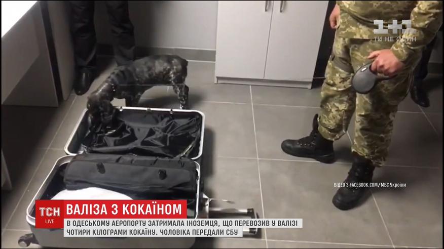 Чоловік прибув до України з країн Близького сходу, планував летіти далі з одеського аеропорту. Однак пройти реєстрацію на літак не дав собака прикордонників. Пес увесь час винюхував валізу іноземця. Коли ж її ретельно оглянули, то виявили подвійне дно, а там 4 кг наркотиків.