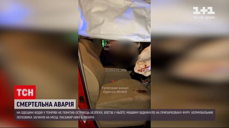 В Одеській області в нічній аварії загинув водій, його пасажира у тяжкому стані забрала швидка. ДТП сталася на в'їзді в село Маяки. Свідки, що були на заправці неподалік, бачили, як водій на швидкості не встиг оминути перепону. Він врізався у бордюр з відбійником, і автівку відкинуло просто під причеп вантажівки, що стояла на узбіччі. Медики швидкої констатували смерть кермувальника, його пасажира з травмою голови нині рятують нейрохірурги.