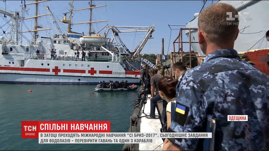 Зранку в гавані, де базуються кораблі українських ВМС, працювали українські, американські, британські, румунські та канадські водолази. Спільне завдання - перевірити гавань та один з кораблів та виключити замінування. Робота у каламутній чорноморській воді складна, проте із завданням водолази пораються успішно.