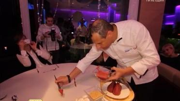 За правилами столиків Фреймут, меню приносять лише після того, як трапеза закінчена, у спеціальному конверті, що пахне улюбленими парфумами телеведучої. Руки миють англійським милом. А замість зубочистки подають зубну щітку.