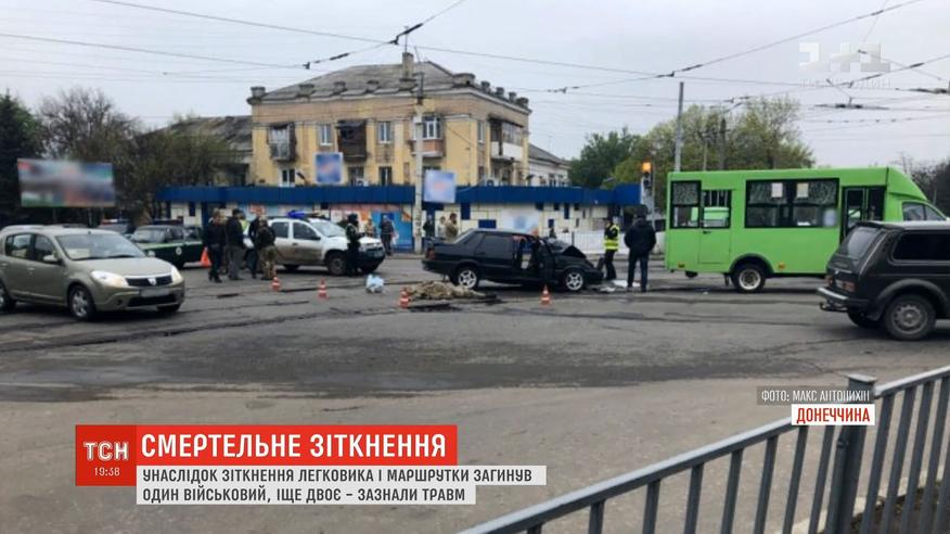 В середмісті Краматорська легковик зіткнувся з маршруткою, загинув один військовий