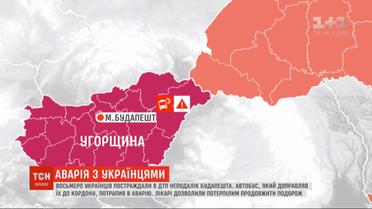 Автобус, що мав довезти вісьмох українців до пункту пропуску "Тиса", де на них чекали родичі, потрапив в аварію за 75 кілометрів від Будапешта. Усі, хто був у салоні, отримали травми. Втім, лікарі, оглянувши потерпілих, дозволили їм продовжити подорож. З батьківщини по українців вже відправили спецтранспорт.