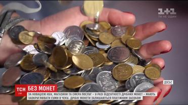 Магазини та сфера послуг у разі відсутності дрібних монет тепер мають округлити загальну суму в бік збільшення або ж зменшення. І не за власним бажанням, а за математичним принципом. Наприклад, 42 копійки заокруглять до сорока, а от 46 - до п'ятдесяти. Йдеться про готівкові розрахунки. Безготівкових новація Нацбанку не торкнеться. Монети номіналами 1, 2, 5 і 25 копійок, що вже є в обігу, і надалі ходитимуть як засіб платежу. Та карбувати нові в Україні вже не будуть.
