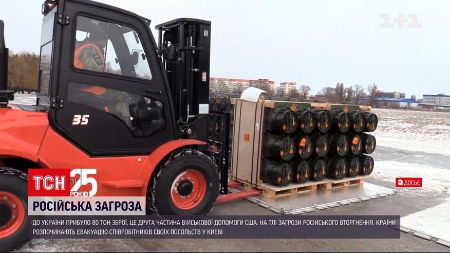 В Україну прибула друга частина військової допомоги Сполучених Штатів - це 80 тонн зброї. Перша партія, у 90 тонн, надійшла минулого тижня. Джо Байден, як пише американська преса, також міркує над розміщення кількох тисяч американських військових, кораблів та авіації у країнах Балтії і Східної Європи. І на тлі загрози війни США, Британія та Німеччина починає евакуацію співробітників своїх посольств у Києві. Детальніше у сюжеті.