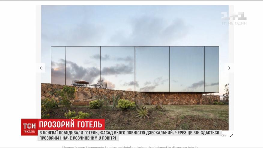 Будівля розташована за 200 кілометрів від столиці Монтевідео. Готель - трохи на височині, і всі його фасади зроблені із дзеркала. Саме тому здається, що готель наче розчинений у просторі. Складається він із 13 кімнат, власного саду та навіть виноробні. Дизайнери передбачили озеленення і даху, що ще більше створює ефект прозорості та природності.