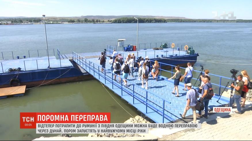 В Одеській області з'явилася перша в Україні поромна переправа. Вона дозволить вітчизняним мандрівникам за невелику плату потрапити до Румунії через Дунай. Поки на пором пускатимуть лише вантажівки. Для однієї поїздка обійдеться у 50 євро. Щойно дозволять проїзд легковиків - ті платитимуть 15 євро з авто. На п’ять євро дорожче коштуватиме переправа для мікроавтобуса. А піший мандрівник зможе перетнути Дунай лише за євро. Поки запустять один, а згодом тут працюватимуть чотири пороми. За добу вони здатні переправити понад 500 авто. Перша вантажівка з України попрямує в румунське Ісакчі сьогодні.