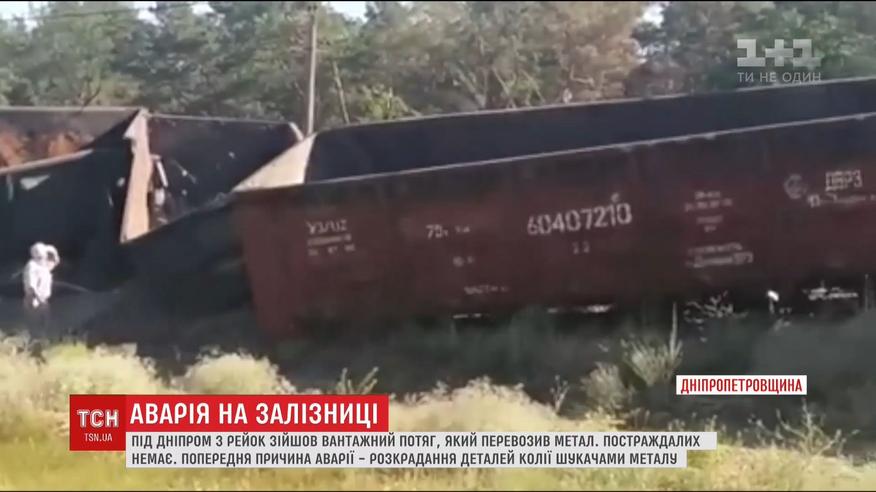 Під Дніпром 11 вагонів та локомотив перекрили рух великим залізничним вузлом. Постраждалих немає. Дивом вдалось уникнути пожежі. Адже з рейок зійшли дві цистерни з дизпаливом. Тепер тонни пального доведеться перекачувати.