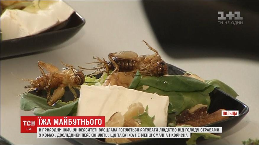 Польські вчені впевнені - салати з жуками та десерти з черв'яками - це їжа майбутнього. В природничому університеті міста Вроцлав стверджують, що до 2050-го року людству буде потрібно у 2 з половиною рази більше їжі. Отже, комахи можуть врятувати нас від голоду.
