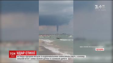 Негода розгулялась Україною: на півдні Одещини одразу кілька величезних вихорів у повітрі перелякали відпочивальників. Люди фільмували смерч, лежачи на пляжі. Вихори провисіли над морем кілька хвилин, і зникли: ані постраждалих, ані руйнувань немає. У Вінниці буревій ламав дерева, а ті трощили автівки. Злива затопила вулиці міста, рівень води подекуди сягав дверцят авто. Без світла негода залишила понад півсотні населених пунктів у центрі та на півдні країни.