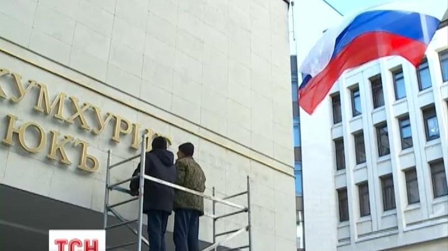 З будівлі Верховної Ради Криму демонтували назву - з фасаду зняли сорока сантиметрові золотаві літери - українською, кримськотатарською і російською мовами.