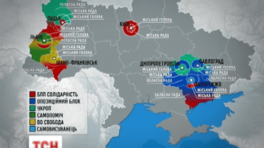 Місцева влада практично відповідає за все, що складає нашу повсякденність - дороги, транспорт, лікарні, школи, комуналка. Вона є розпорядником грошей на ці наші потреби. То чого чекати, зважаючи на сьогоднішній результат виборів. Наші дизайнери створили спеціальну карту, де видно, в якій пропорції поєднані кольори партійних брендів.