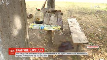 Трагедія під час застілля: у Чернігівській області від розриву гранати троє людей загинули, ще одного чоловіка нині рятують медики. Усе сталося, коли четверо людей сиділи за столом на подвір'ї. Один із чоловіків приніс вибухівку, і вона здетонувала просто у руках. Очевидці кажуть: цьому передувала словесна суперечка. Детальніше – у сюжеті.