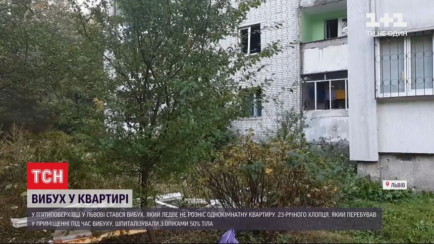 Вибух у квартирі. У Львові у п’ятиповерховому будинку стався вибух такої сили, що ледь не розніс однокімнатну квартиру. Ось як виглядає помешкання після вибуху: пошкоджені меблі, продірявлені двері, розбиті вікна, а одну віконну раму вибуховою хвилею просто викинуло на землю. 23-річного хлопця, який перебував у квартирі, шпиталізували з опіками 50% тіла.