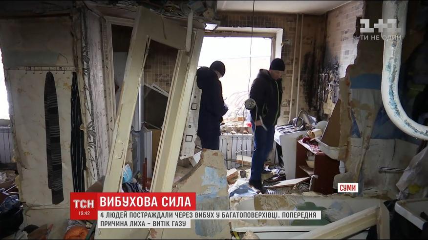 Постраждали четверо людей. Попередня причина - витік газу. В квартирах на першому поверсі повилітали всі міжкімнатні перегородки. Власника квартири, де стався вибух, сусіди називають неврівноваженим.