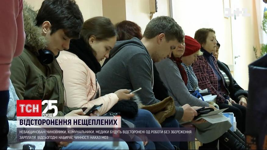 Невакциновані на вихід. Комунальник, чиновники та медики, що не мають хоча б одного щеплена від коронавірусу, будуть відсторонені від роботи без збереження зарплати. Від сьогодні набуває чинності наказ МОЗ. Тим часом відомо, що 10% працівників медичних закладів так і не пройшли вакцинацію. Чи не забракне персоналу через відсторонення у розпал нової хвилі пандемії – дивіться далі.