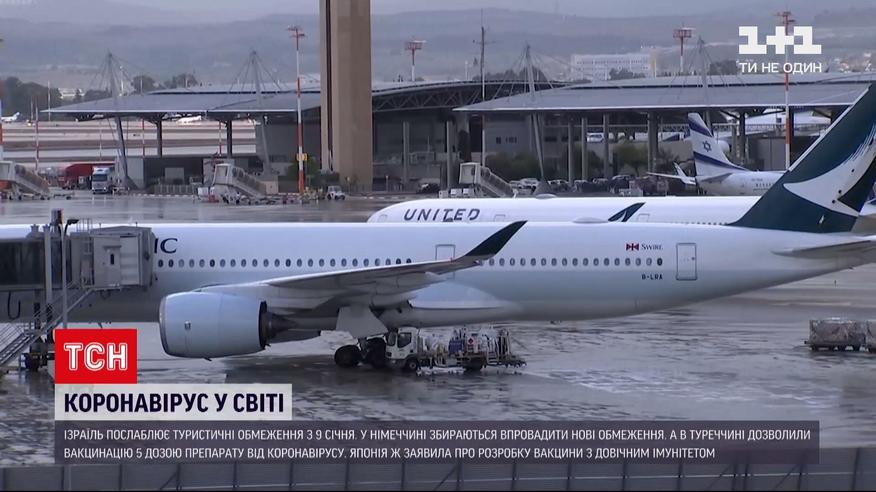 Ізраїль відкриває кордони для іноземних подорожувальників. Щоправда, лише для країн, яких відносять до так званого "помаранчевого" списку, серед якого є й Україна. А от у Німеччині через COVID та новий штам "Омікрон" збираються впровадити нові обмеження. Тим часом у світі з шаленими темпами вакцинують населення. У Туреччині вже дозволили введення 5-ї дози вакцини від коронавірусу. Бустерне щеплення препаратом від "Пфайзер" мають намір робити в США підліткам.