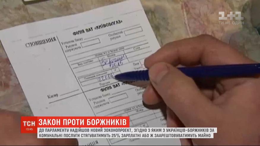 Українці у боргах - 25 мільярдів гривень винні за комунальні послуги. І це ще, не враховуючи газ та електрику. Депутати придумали як боротися з боржниками. У парламенті вже лежить законопроект. Вже зовсім скоро якщо ви маєте борг, то з вашої зарплати 25% списуватимуть на виплату. Або ж арештують ваше майно.