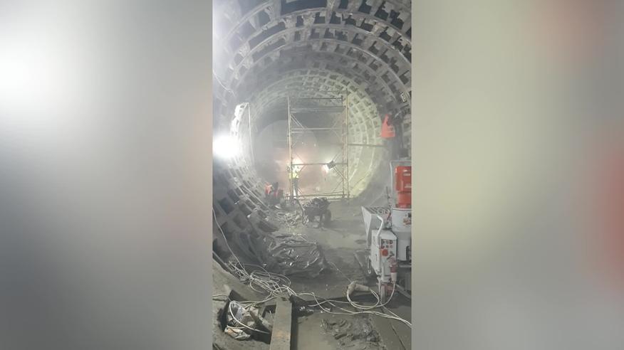 У столичному метрополітені тривають ремонтні роботи на ділянці "Деміївська" – "Либідська". Фахівці працюють як всередині тунелю, так і на зовнішньому майданчику: розроблюють котлован, видаляють зруйнований бетон та хімічно закріплюють ґрунти. Попередньо, рух поїздів "синьою" лінією метро мають відновити до кінця літа 2024 року.