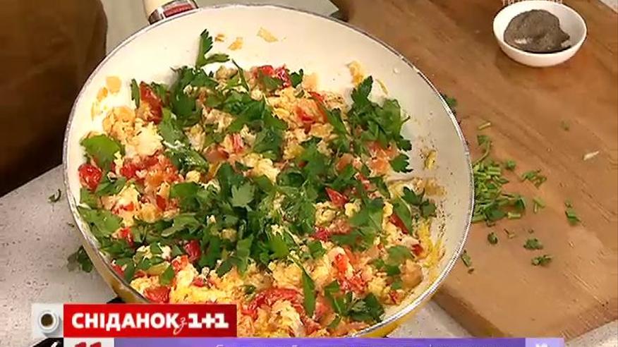 У студії «Сніданку» Віктор Павлік приготував смачне рагу. Для приготування страви вам знадобиться: яйце, цибуля, перець болгарський, зелень та спеції за смаком.