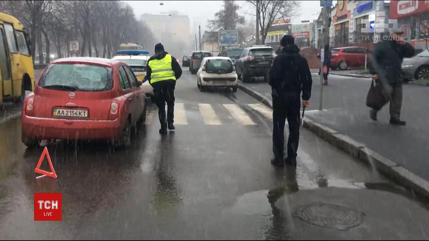 На столичному Подолі водій легковика заїхав на трамвайні колії і не впорався з керуванням. Авто занесло в бік тротуару і відкинуло просто на людей, що стояли на зупинці. Потерпілих шпиталізували, в одного з них черепно-мозкова травма.