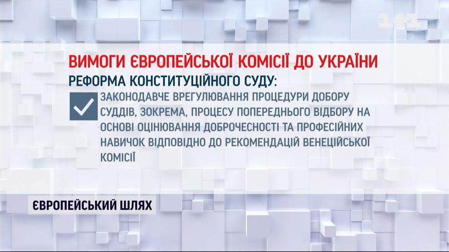 Серед вимог Єврокомісії до України - лише сім пунктів. Деякі з них можна назвати ключовими, а деякі, вочевидь, доданими на прохання країн-членів ЄС. Єврокомісія обіцяє відстежувати процес виконнаня цих вимог і відзвітувати до кінця року. Водночас, віцепрем'єрка з питань євроінтеграції заявила - Київ має намір виконати ці вимоги до кінця року.