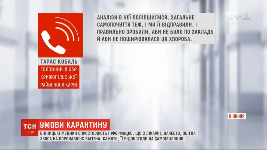 Не збігла з лікарні, а відпустили на самоізоляцію. Вінницькі медики спростовують інформацію, яка з’явилась в Мережі. Буцімто інфікована коронавірусом вагітна жінка втекла з лікарні. Пояснюють, до Крижопільської лікарні звернулась 21-річна вагітна із скаргами на підвищену температуру та слабкість. Швидкий тест показав негативний результат, але аналізи, які відправили до лабораторного центру підтвердили коронавірус. Більше про коронавірус в Україні