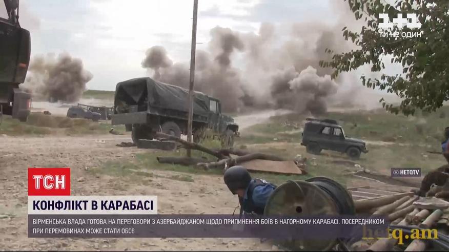 Вірменія готова говорити з Азербайджаном про припинення боїв у Нагірному Карабасі – заявили в тамтешньому МЗС. А посередником має стати Мінська група ОБСЄ, яку створили ще в 90-х роках для розв’язання цього конфлікту. Головують у ній США, Франція та Росія. Напередодні їхні лідери у спільній заяві закликали Вірменію та Азербайджан припинити вогонь і сісти за стіл переговорів. Те саме просили і в Радбезі ООН.
