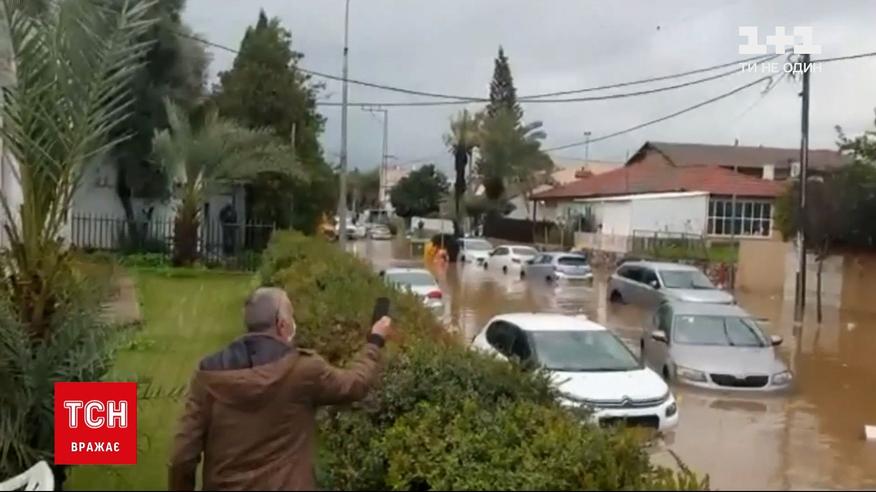 Після сильних злив там тепер замість машин на дорогах човни. По-іншому пересуватися просто неможливо. Води по пояс. Кількох людей рятувальникам довелося визволяти з власних авто. А містечко Лод узагалі було відрізане від транспортних сполучень, і єдиний спосіб виїхати чи заїхати звідти був потяг.