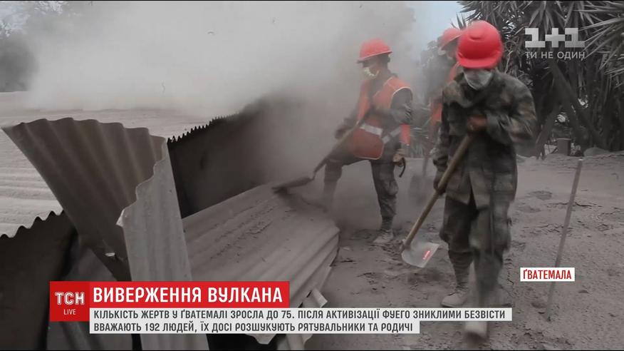 75 людей загинуло внаслідок виверження гватемальського вулкану. Вогняна гора Фуего продовжує викидати гарячий газ та лаву, і через це у регіоні триває евакуація. Майже дві сотні людей влада вважає зниклими безвісти. Залишити свої домівки під час найбільшого за 44 роки виверження вже довелося тисячам гватемальців.