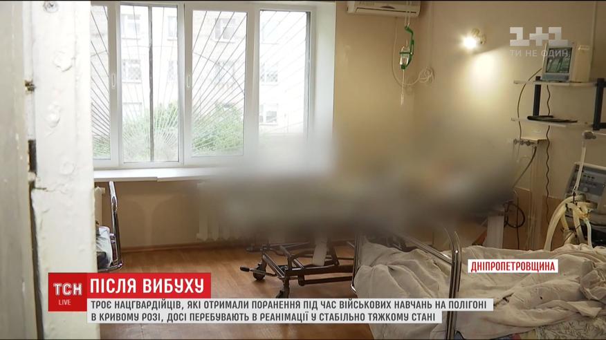 Нацгвардійці, поранені під час навчань у Кривому Розі, залишаються у тяжкому стані. В усіх трьох - ушкоджені ноги. Мінно-вибухові поранення бійці отримали на полігоні 17-ї танкової бригади, коли встановлювали мішені для стрільби зі снайперської зброї. Що саме вибухнуло - досі невідомо. Представники Нацгвардії стверджують: боєприпасів солдатам не видавали. Військова прокуратура розпочала розслідування.